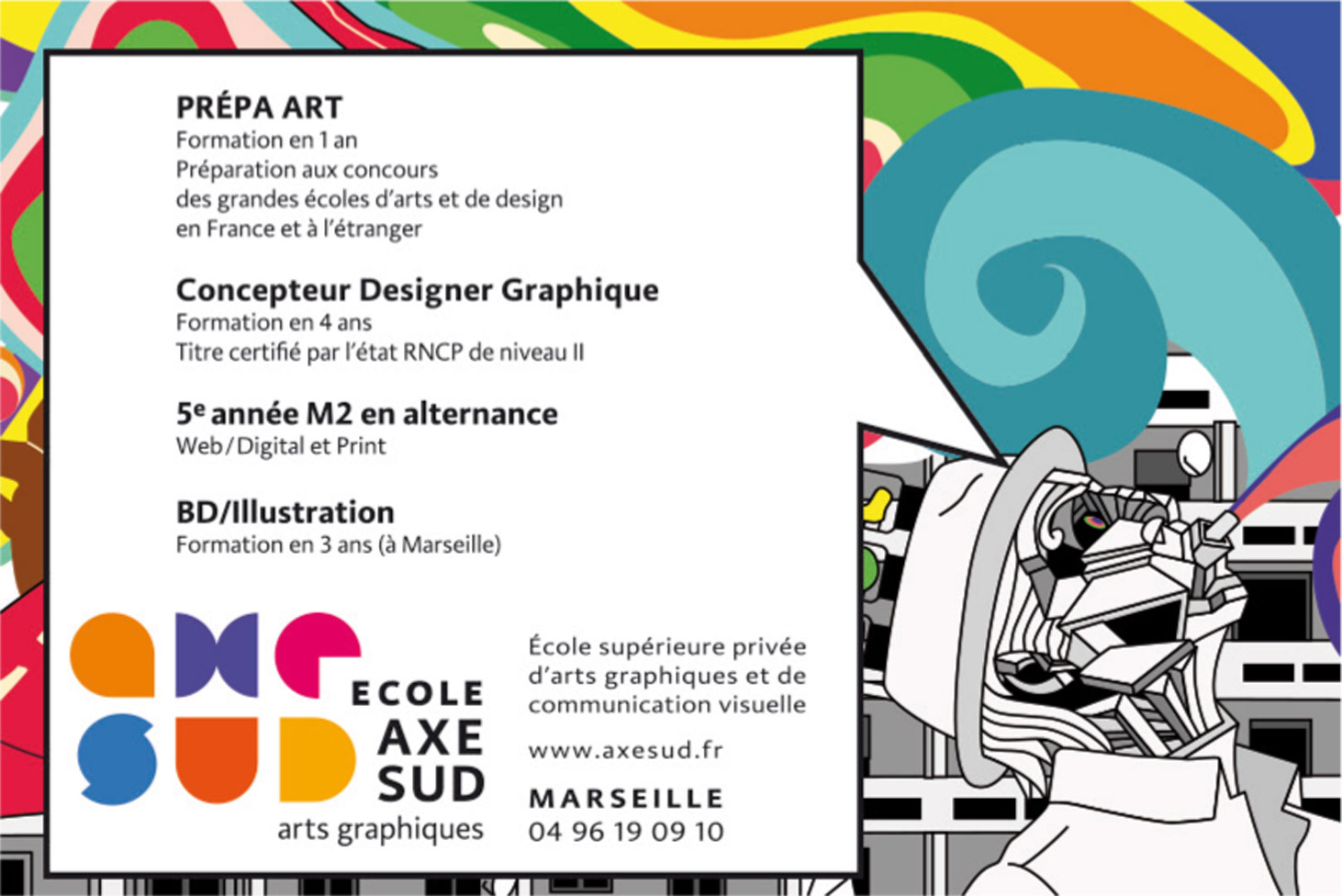 14H00 Cours de création d’une page de BD par l’École Axe-Sud (à partir de 13 ans, inscriptions sur place).