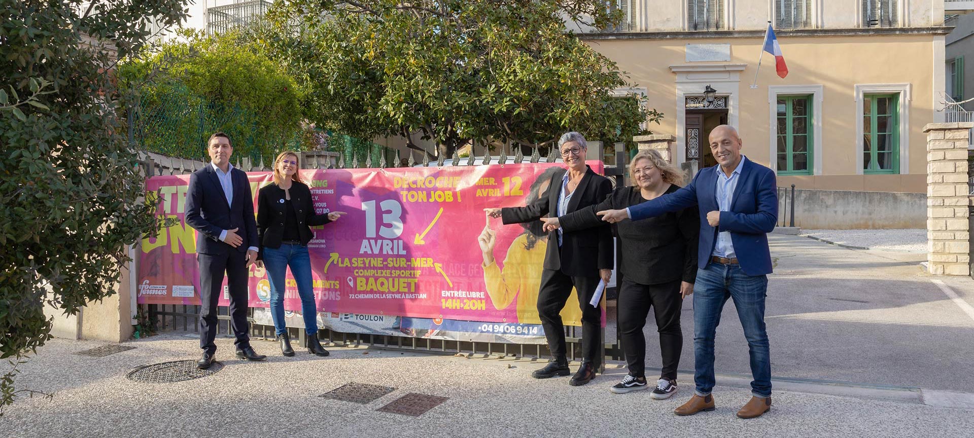Le forum #TrouveUnJob 2023 est le point d'orgue d'une action partenariale bien plus large pour accompagner l'insertion des jeunes à l'échelle de l'Ouest-Var et conduite du 11 au 14 Avril 2023 sur le bassin de La Seyne-sur-Mer et de Six-Fours Les Plages. Pour la 3ème année consécutive, les partenaires Pôle Emploi, Mission Locale, Bureau Information Jeunesse, ainsi que la Ville de La Seyne-sur-Mer, ont travaillé en collaboration pour organiser une semaine d'actions avec un objectif commun: Proposer des solutions pour favoriser l'insertion professionnelle des jeunes.