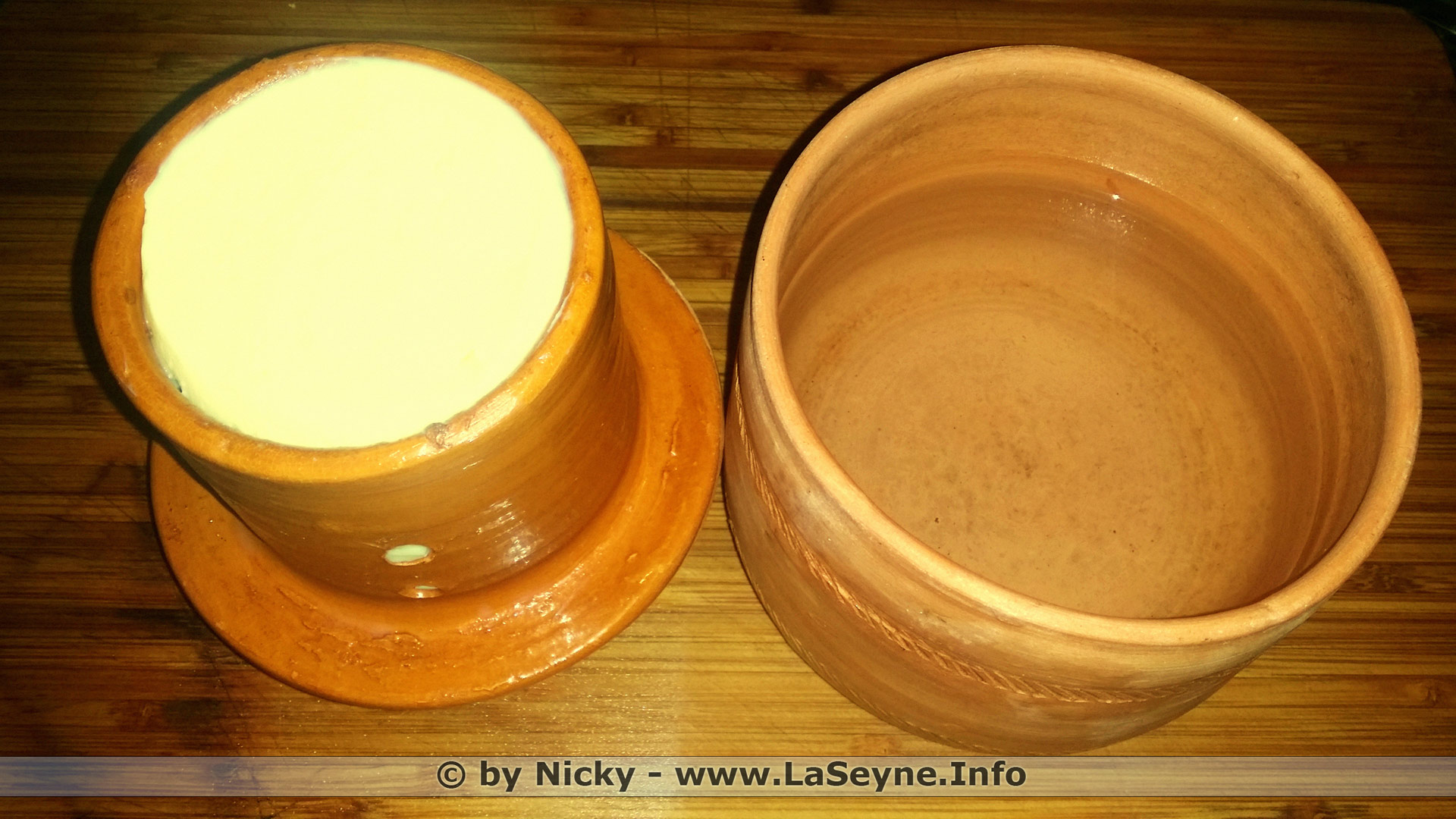 Le Beurrier à Eau - Citation: "Le beurrier à eau est un ancien système de conservation du beurre. Il aurait été conçu au XVIIIe siècle, donc bien avant le réfrigérateur. Ce pot permettait de conserver le beurre à l’abri de la lumière et de l’air ambiant. Il s’est fait plus rare de nos jours mais il est encore possible d’en trouver chez certains potiers ... Comme une boîte, il est composé de deux parties : la base où l’on verse de l’eau salée dans le fond et le couvercle haut qui, lui, est rempli de beurre. Une fois le beurrier fermé, le beurre est en contact avec l’eau. Ce système empêche l’oxydation et le beurre ne rancit pas. Pour une bonne conservation, il est nécessaire de changer l’eau tous les trois jours environ ... C’est un moyen écologique qui permet de maintenir de beurre à température ambiante pour qu’il soit plus facilement tartinable. Voilà du beurre parfait pour tartiner le pain chaud ou pour cuisiner. Il reste tendre sans pour autant fondre puisqu’il est quand même maintenu au frais par l’eau. Le beurre se garde ainsi plusieurs semaines, sans prendre de goût ou d’odeur désagréables.