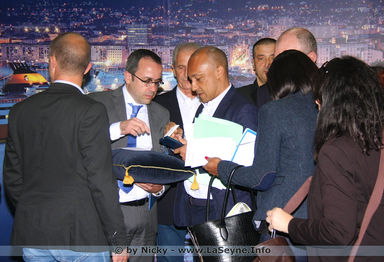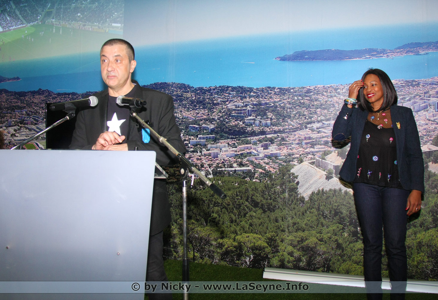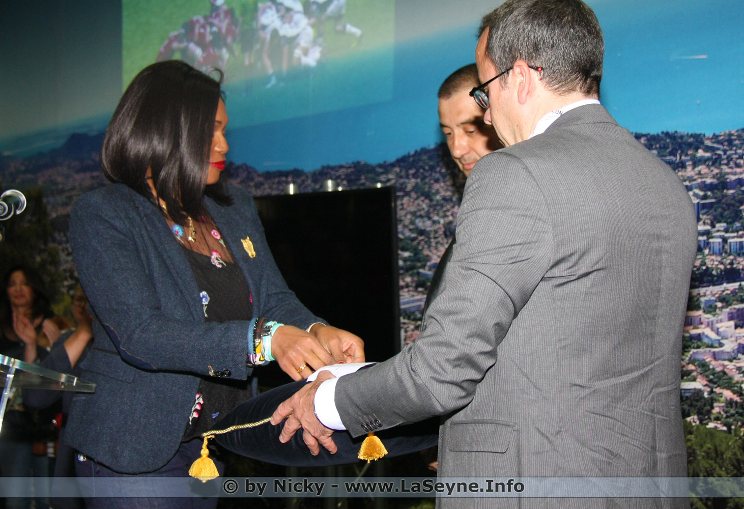 Remise de la Médaille de Chevalier de l’Ordre national du Mérite à Mourad BOUDJELLAL par Laura FLESSEL - Ce samedi 28 avril 2018, Laura FLESSEL, ministre des Sports, s'est rendue à Toulon au palais Neptune pour la remise de la médaille de Chevalier de l’ordre national du Mérite au président du RCT, Mourad BOUDJELLAL et pour assister à la rencontre du TOP 14 de rugby qui opposerait le Rugby Club Toulonnais (RCT) au Castres Olympique.